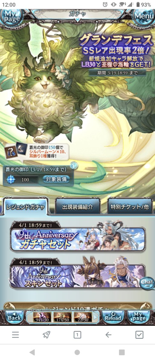 グラブルの無料100連、SSR4で限定は刃鏡片のみって言うこれだけ聞くとかなりしょっぱい結果みたいなんですけど限定じゃないけど限定より強いまであるやつの特に上位2人が来たから大勝ちかもしれん